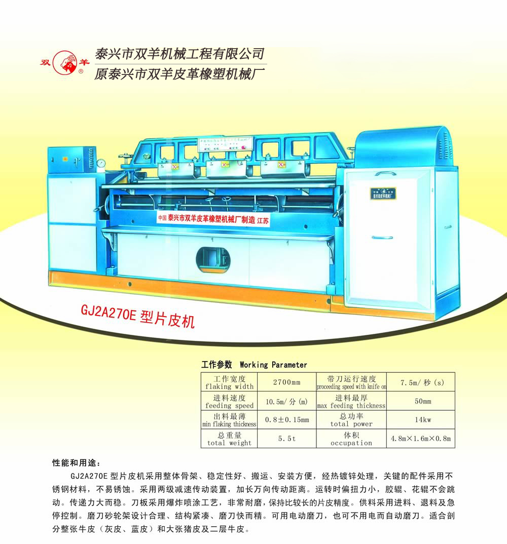 GJ2A270E型片皮機 發(fā)布者: 發(fā)布時間:2015-10-23 點擊量: 3040